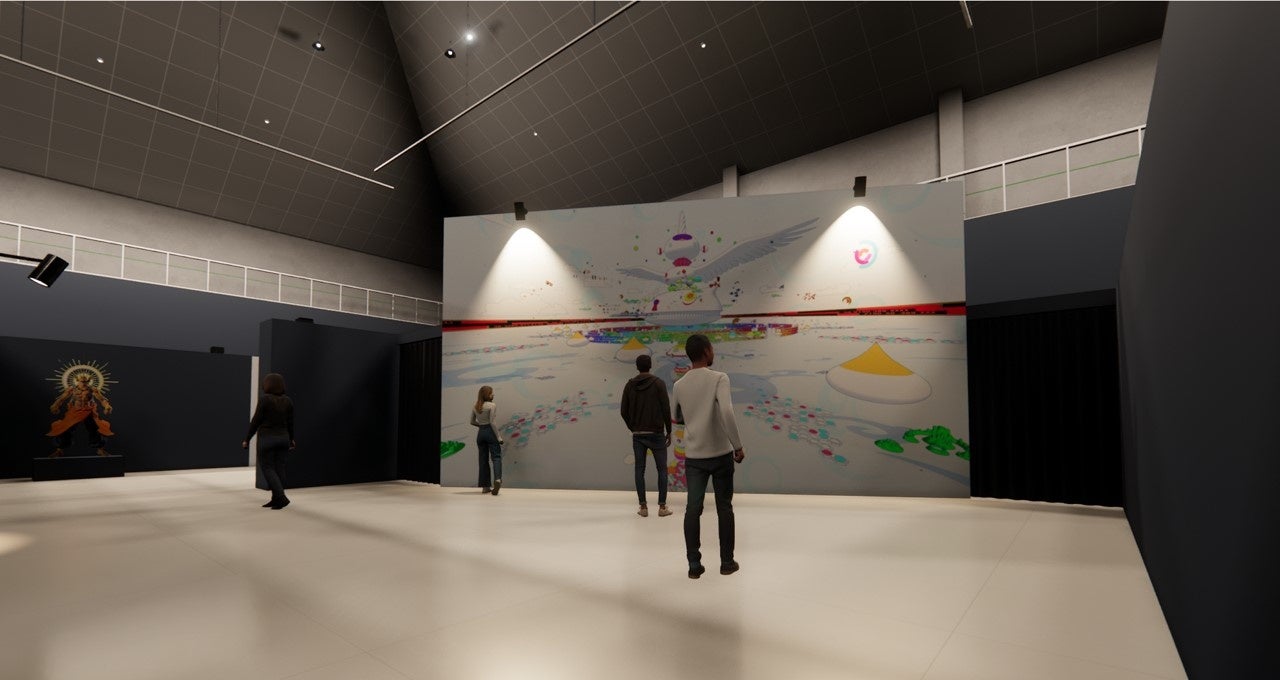 作中に登場する、世界中の人々が自分の分身となるキャラ(アバター)を設定し、現実世界と変わらない生活を送ることができるインターネット上の「仮想世界『OZ』」を高さ4.5mのパネルで再現します。このエリアでは、壁両面でのプロジェクションマッピングや、作中に登場する名言の展示も実施します。
