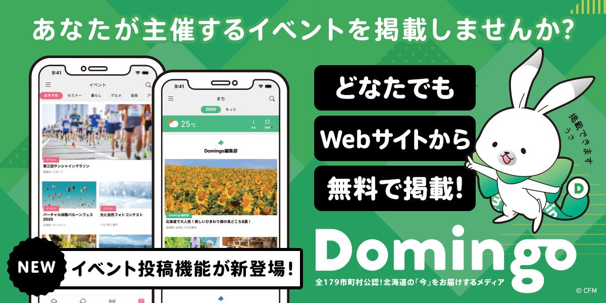 あなたのイベント情報、北海道情報メディア「Domingo」に無料掲載しませんか? 2022年4月4日(月)より、ユーザーによるイベント投稿機能の運用開始!