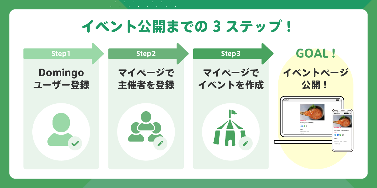 本日より『Domingo』公式Webサイトのマイページから、イベント情報の投稿が可能です。詳しい方法は下記ページにて紹介しておりますので、ぜひ「イベント投稿機能」をお役立てください。