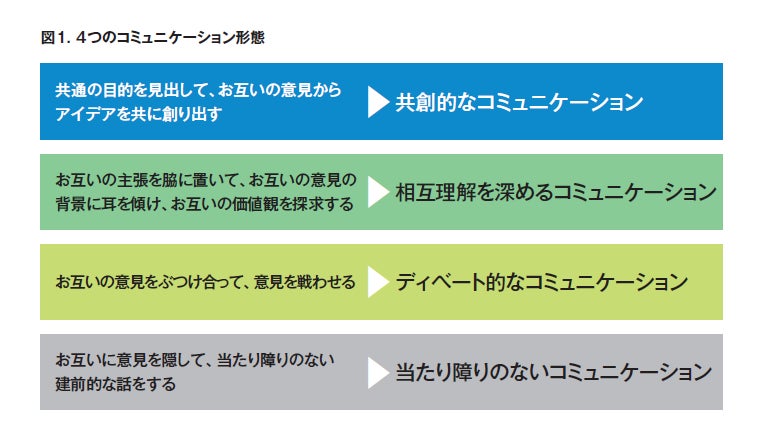 今回の調査では、形態を4つにグルーピングし、そのうち「共創的なコミュニケーション」を「対話」と定義しています。