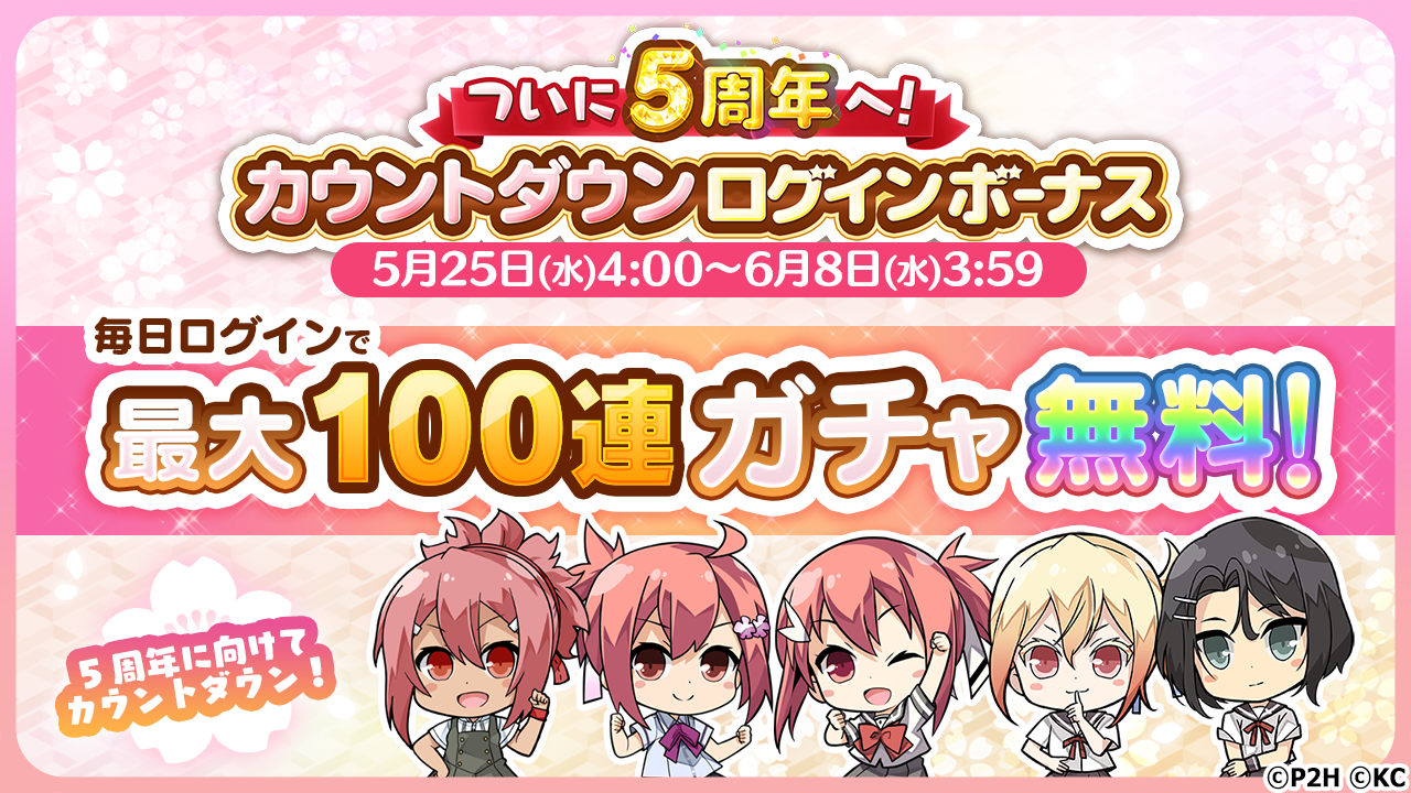 6月8日(水)の5周年に向けたログインボーナスを実施中です!
