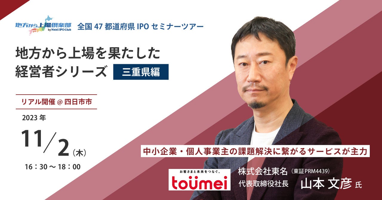 【第7回/参加費無料】「全国47都道府県IPOセミナーツアー/三重県編」を開催します!【地方から上場倶楽部 by Next IPO Club】