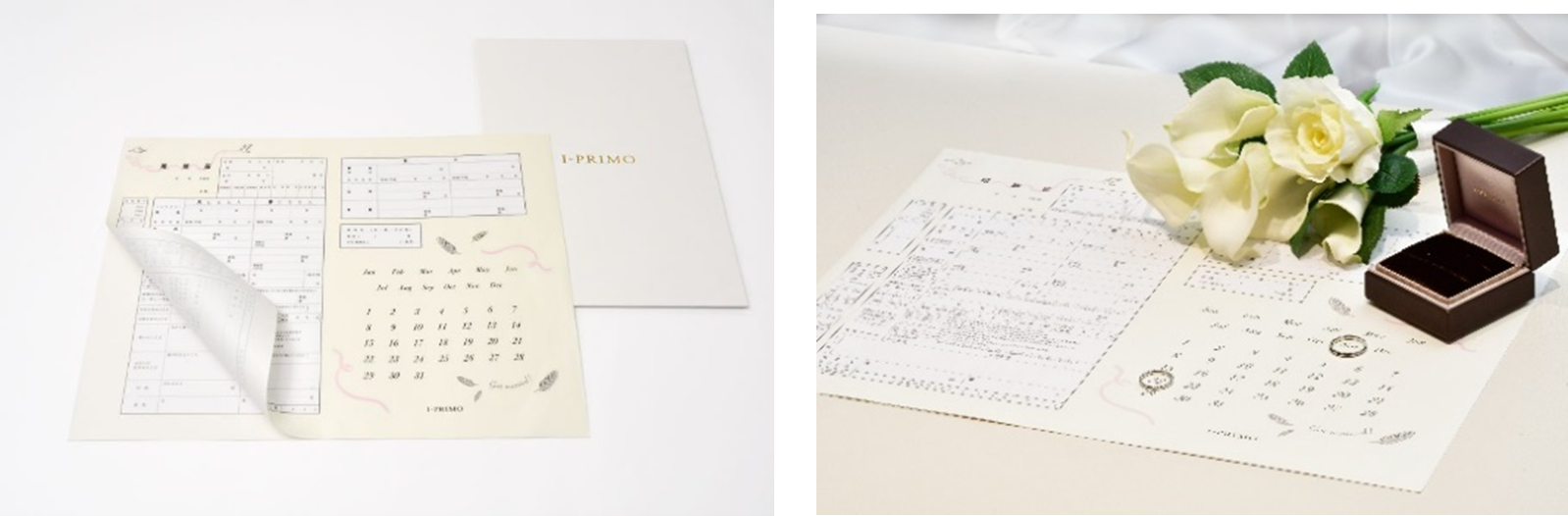 節目となる大切な瞬間を保存できるよう婚姻届は複写式です。1枚目は提出用、2枚目は記念としてお持ちください。記念日にリングを置き、おふたりだけのオリジナル写真を撮ることもできます。