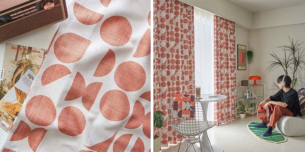 ②レトロカルチャーを愉しむ、エモさ満載の幾何学柄カーテン <フレト> ¥6,200~