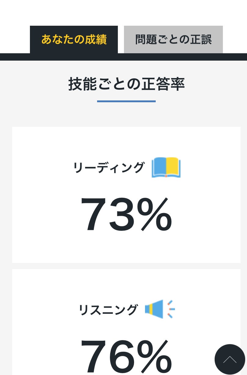 英検1~5級の全級に対応し、Webから解答を入力するだけで、リーディング・リスニングを自動採点できます。ライティング(英作文)は観点別の自己採点ができます。問題ごとの正誤だけでなく、技能ごと・大問ごとの正答率も自動で計算されます。