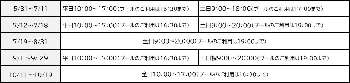 株式会社東京サマーランド(所在地:東京都あきる野市、代表取締役社長:折戸 一義)は、屋外プールエリア(一部)を5月31日(土)より土日限定でオープンいたします。