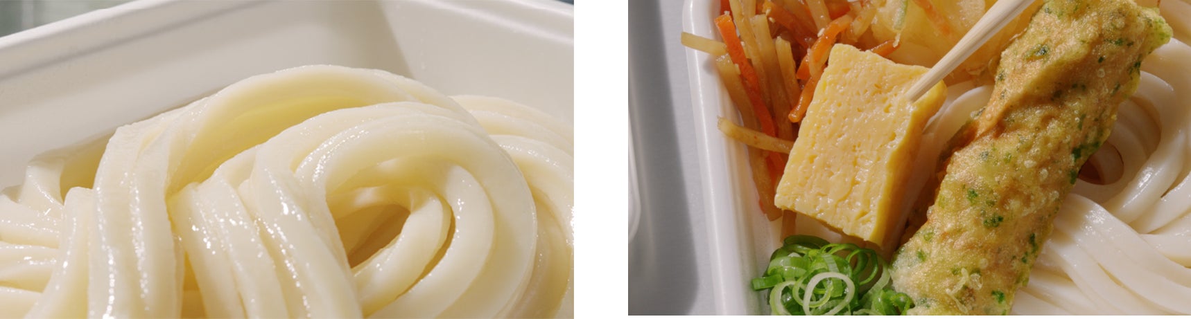 また、「丸亀うどん弁当」は、すべてのお弁当で“冷たいぶっかけうどん”と“温かいかけうどん”をお選びいただけます。冷と温で変わる麺の食感の違いや天ぷら、おかずがだしに混ざり合って生まれる調和をお楽しみください。