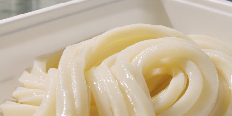 「おいしいうどん」は、徹底的に鮮度にこだわりぬいた「生きている」状態で提供されて初めて実現できる、と丸亀製麺は信じています。丸亀製麺がお届けするうどんは、国内 800 を超えるすべての店で一軒、一軒、手間を惜しまず、毎日、100%国産の小麦粉から打っています。打ち立てのうどんにこだわり、その場で切って、茹でて、作りたてをお客さまに提供しているからこそ、もちもちでおいしい独自の“丸亀食感”をお届けできています。