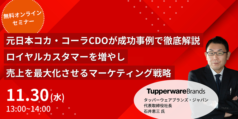 【無料オンラインセミナー】元コカ・コーラCDOが成功事例で徹底解説 ロイヤルカスタマーを増やし売上を最大化させるマーケティング戦略を開催