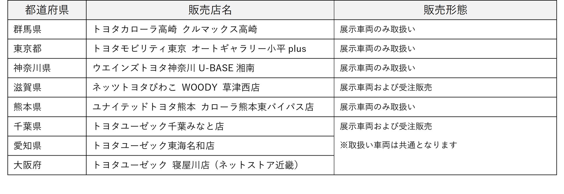 以下のCORDE by 商品取扱い販売店のみでの販売となります。中古車をベース車としているため、販売店ごとに車両仕様(年式/走行距離など)が異なっており、さらに発売時点での展示車両の台数も異なります。取扱店舗ごとの取扱台数、車両仕様、販売方法など詳細情報は2月初旬より順次公開いたしますので、公式サイトやInstagramにてご確認ください。