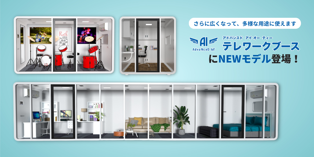 【完全カスタマイズも可能】プライベートな防音ルームを安価にどこでも設置できるAdvaNceD IoTテレワークブースの広々とした個室として利用できるプレミアムモデルが新登場!