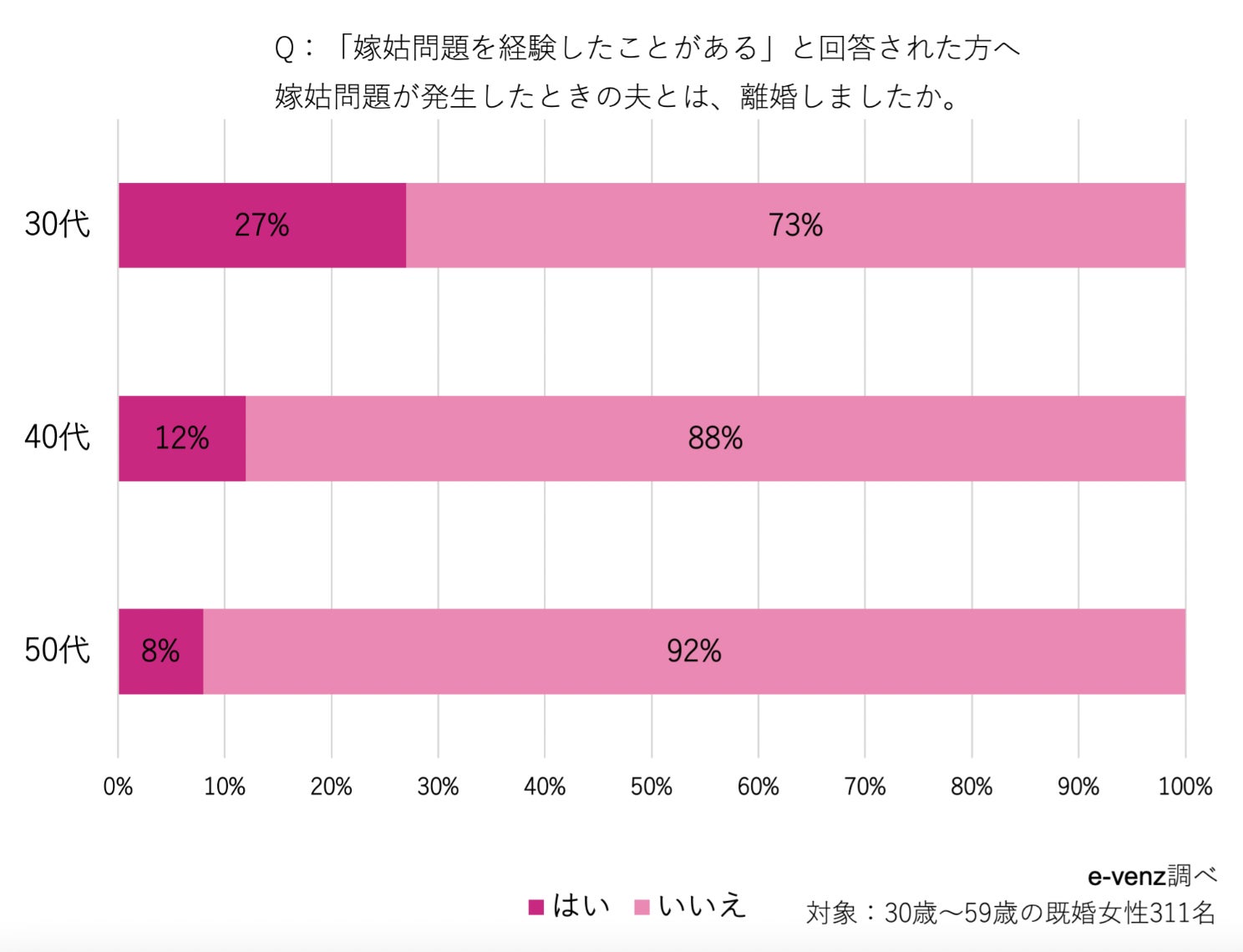「嫁姑問題を経験したことがある」と回答した方に、嫁姑問題が発生したときの夫とは、離婚したか調査してみました。
