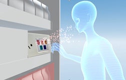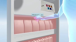 タブレット操作によって商品の香りが噴射され、消費者が購買意欲の湧いた商品を手に取るイメージ