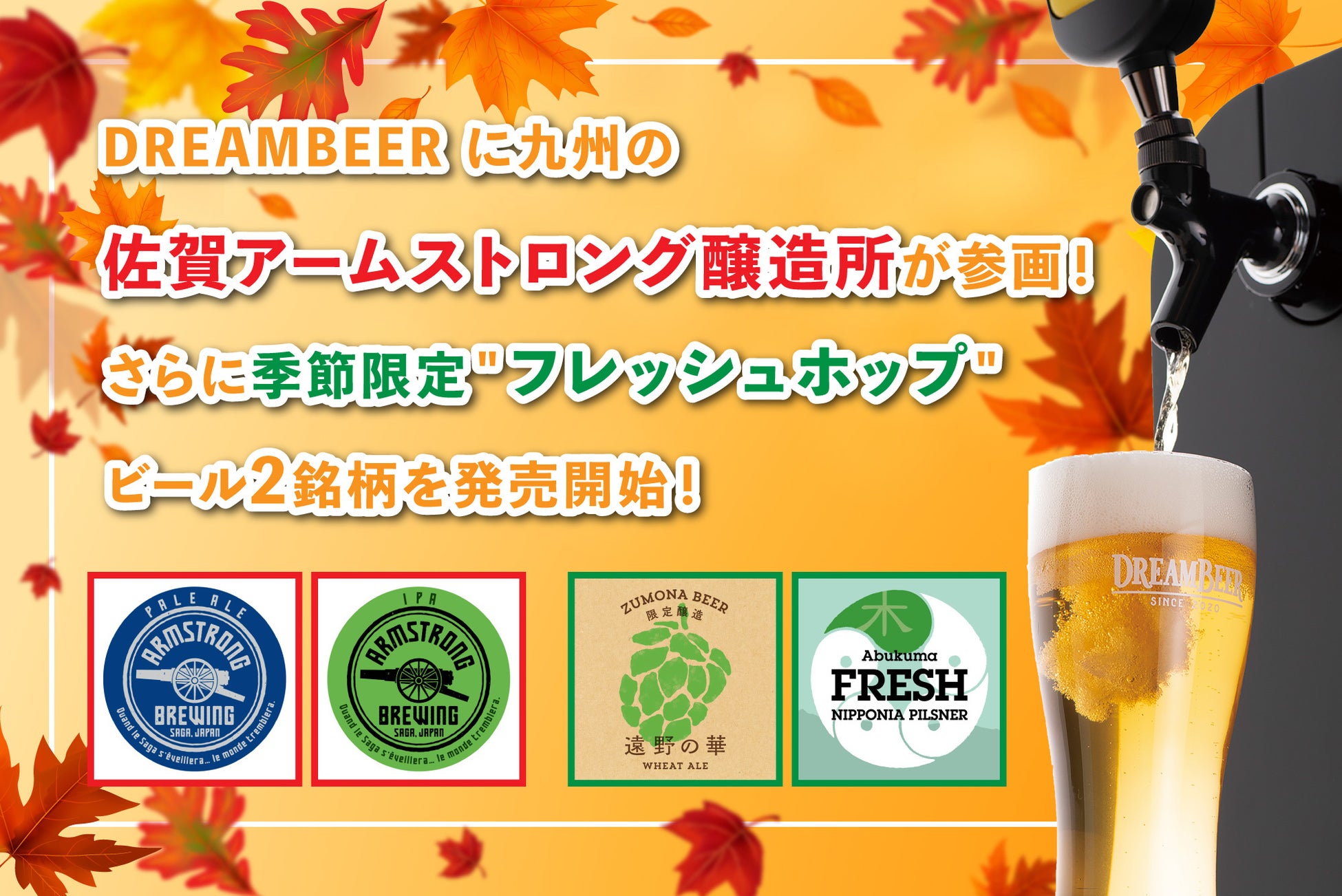 DREAMBEER に九州の佐賀アームストロング醸造所が参画!さらに季節限定"フレッシュホップ"ビール2銘柄を発売開始!!