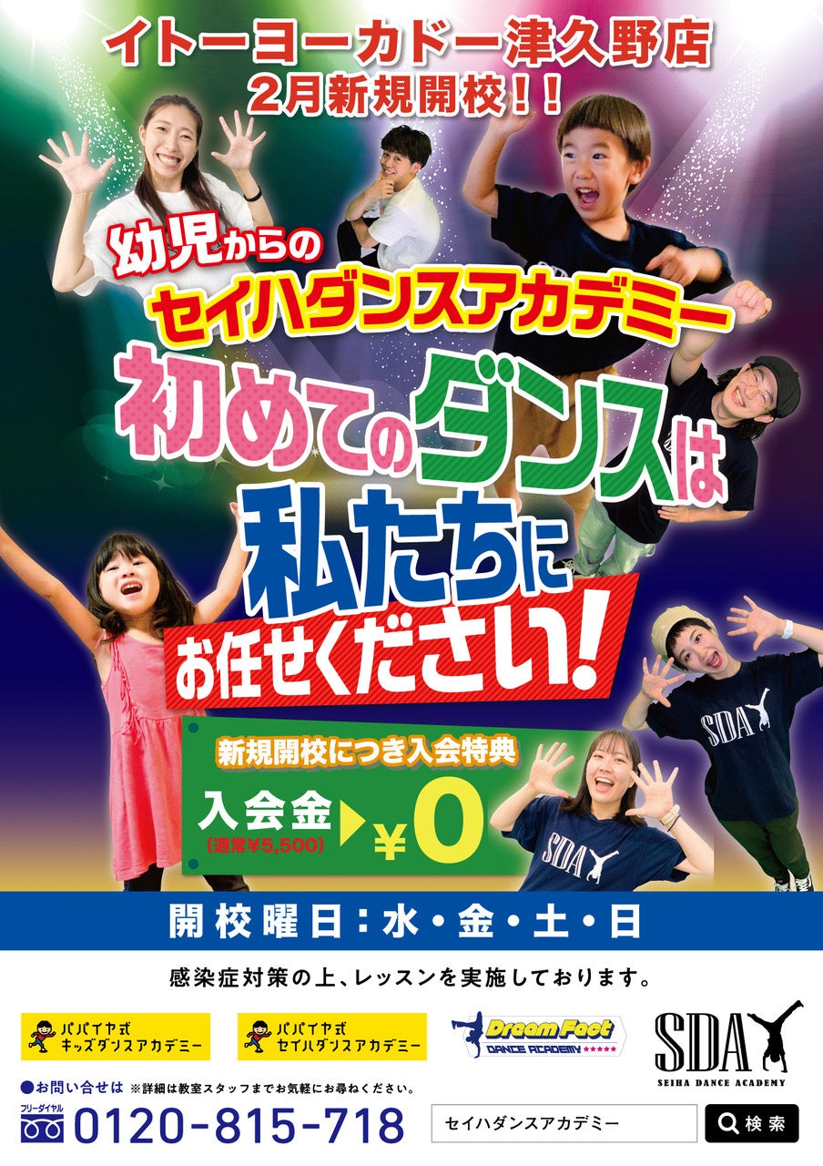 株式会社セイハダンスアカデミー(福岡県福岡市,代表取締役:坂⼝ 正美,以下セイハネットワーク)は、大阪府堺市西区に「幼児からのダンス教室 セイハダンスアカデミーイトーヨーカド津久野」を、2023年2⽉に新規開校いたします。