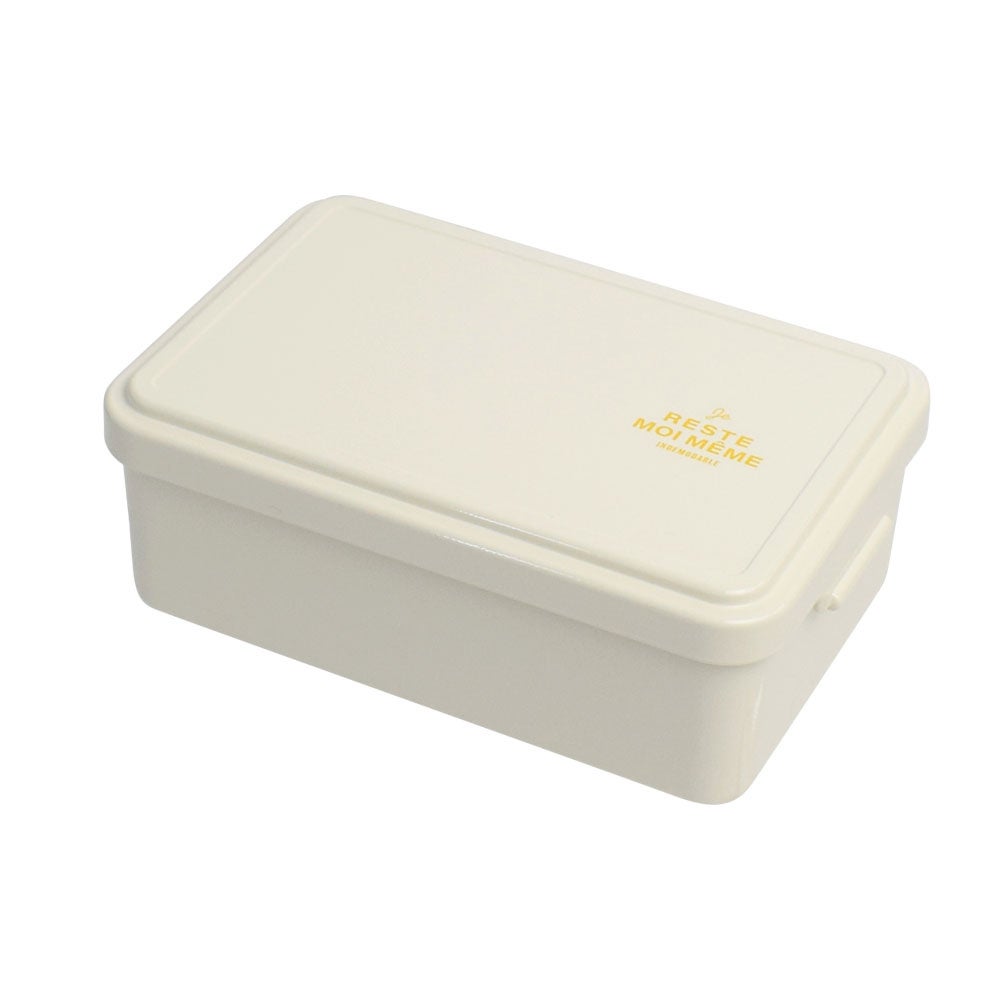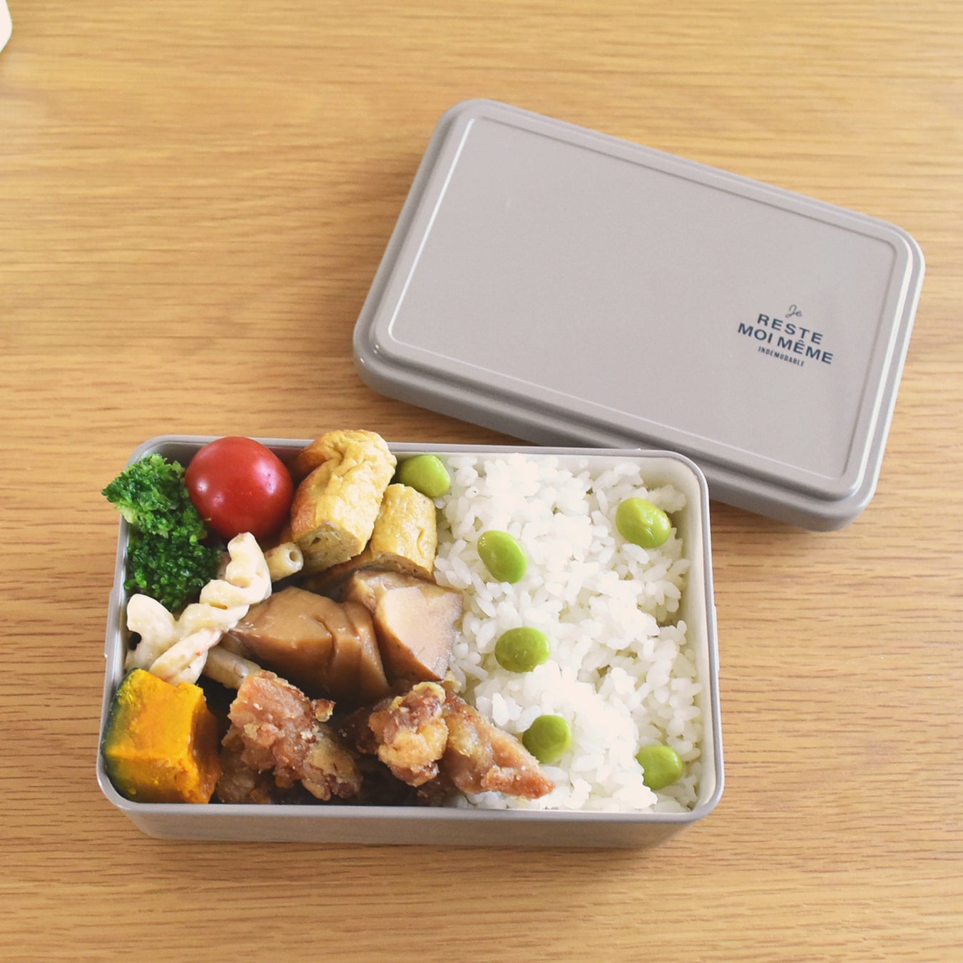 シンプルな形状の1段ランチボックス。つやっとした塗装と凹凸の少ないシンプルな形状は高級感を感じます。少ないパーツで止め具やランチベルトがなくてもしっかり止まるフタや電子レンジ、食洗機対応で機能性も抜群です。