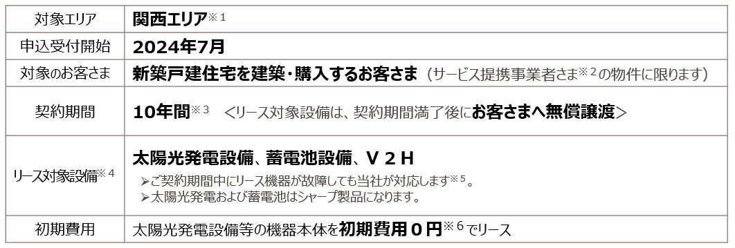 ※4 本サービスにおける太陽光発電設備(パネル出力3kW未満)のリースは必須で、パネル出力3kW以上10kW未満はオプションリースとして選択が可能です。その他、蓄電池設備、V2Hの選択が可能です。