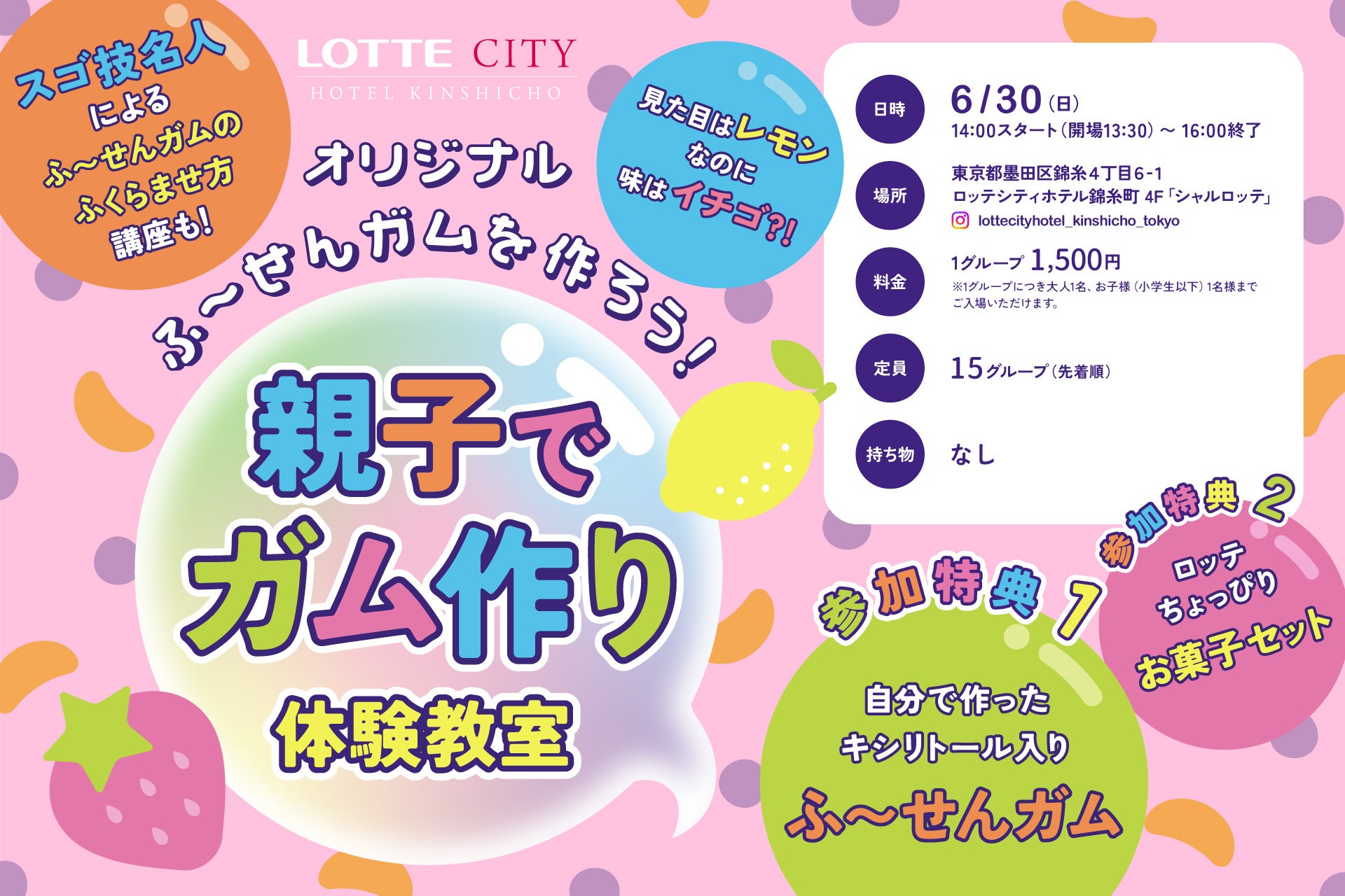 本イベントは、チューインガムを製造する「ロッテ」と、東京スカイツリー®を館内から眺められる地下鉄半蔵門線「錦糸町」駅直結のホテル「ロッテシティホテル錦糸町」がコラボレーションをして実現した1日限定の体験教室です。