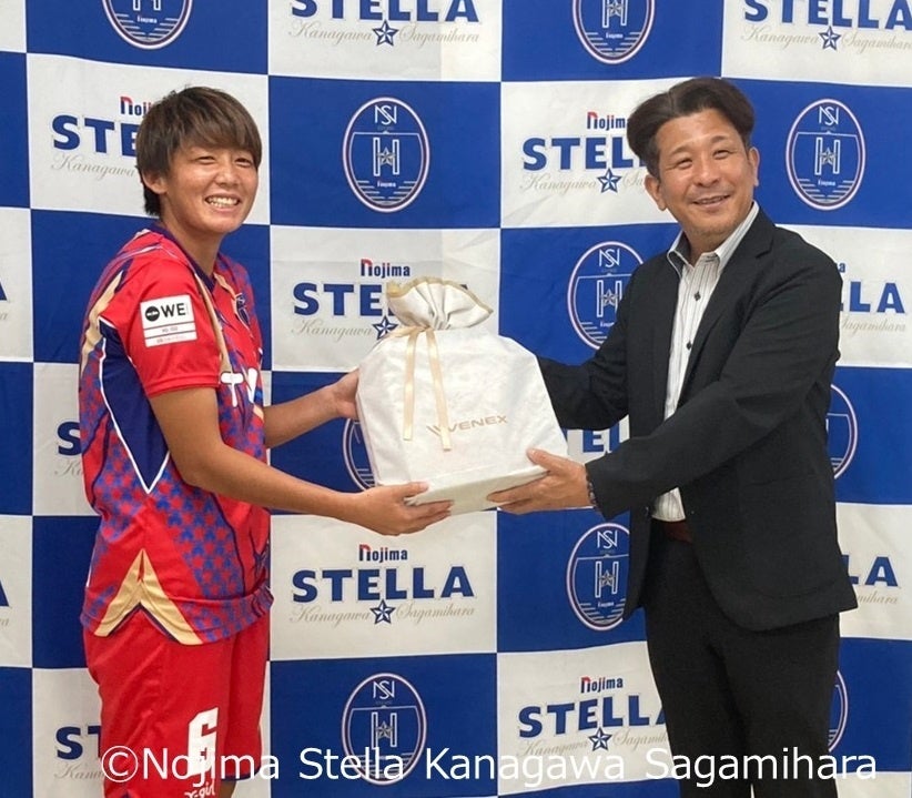 「このたび、サッカーWEリーグのノジマステラ神奈川相模原様と「オフィシャルリカバリーウェアサプライヤー」契約を結させていただくことになりました。「ノジマステラ神奈川相模原」選手の皆様の「休養」をサポートさせていただけるということ、心より光栄に思っております。