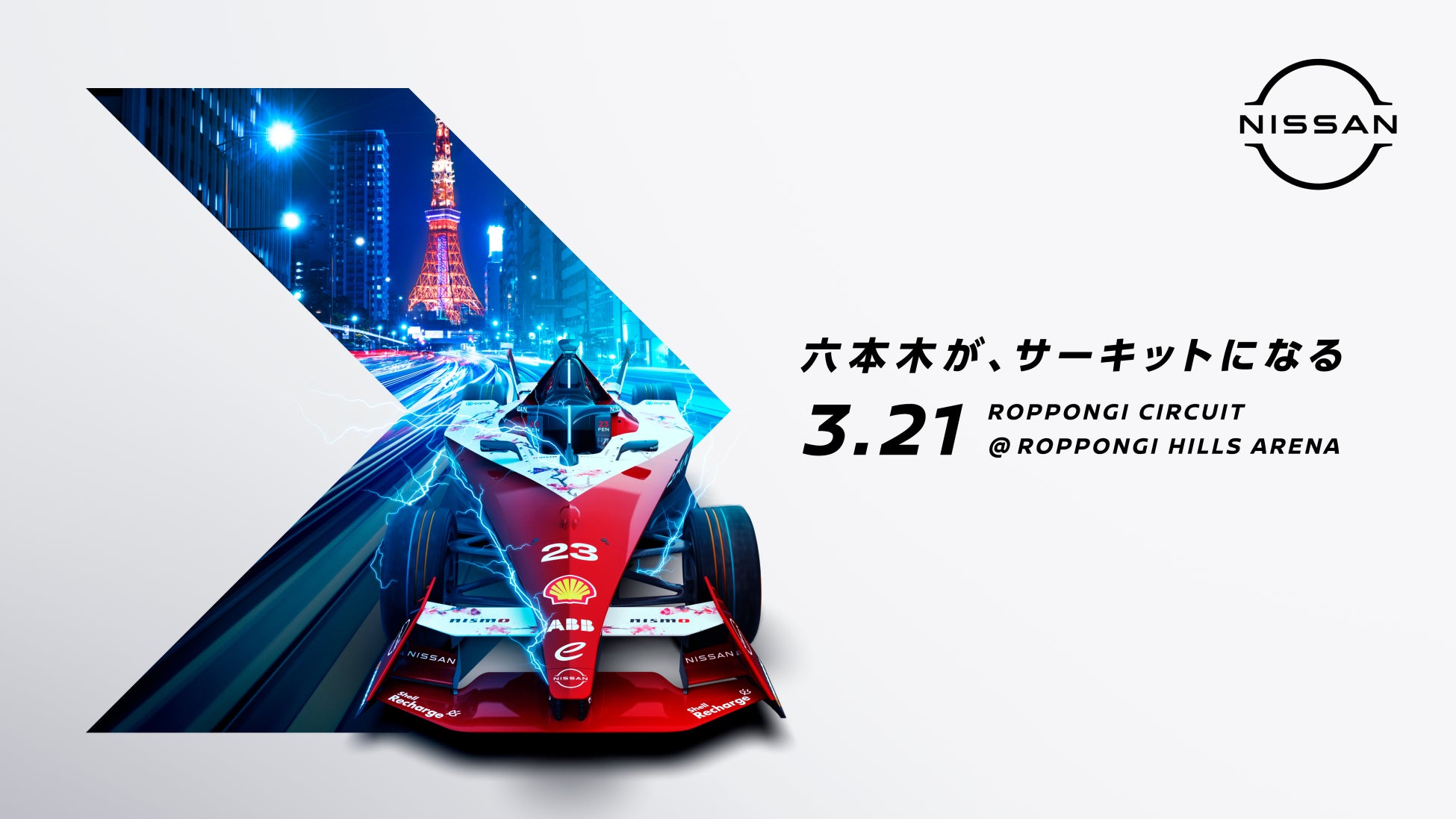 2024年3月30日(土)に開催されるフォーミュラE世界選手権『Tokyo E-Prix』の開催を目前に控えた中、期待を寄せるファンのみなさまだけでなく、まだフォーミュラEをご存じない方にも、世界最高峰のEVレースの迫力を体感いただきながら、日産が持つ技術力と情熱を広く知っていただき、本大会をさらに盛り上げるべくスペシャルイベントを企画しました。六本木ヒルズアリーナに、全長110メートルのオーバル型特設サーキット「NISSAN FORMULA E ROPPONGI CIRCUIT」が出現!