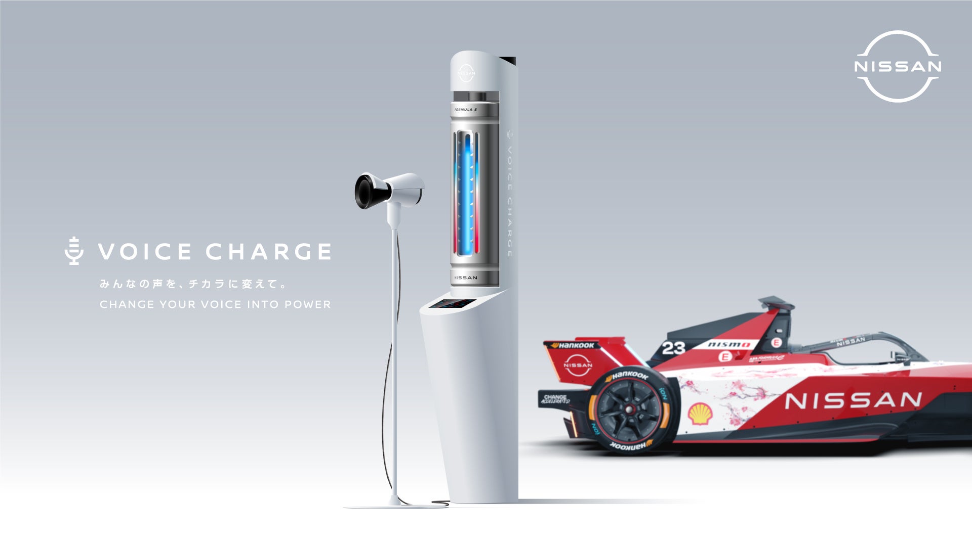 VOICE CHARGEは、世界に挑む日産フォーミュラEチームへ声援を送るプロジェクトです。声援を電力に換えて、集められた電力はオリバー ローランド選手やサッシャ フェネストラズ選手をはじめとした日産フォーミュラEチームへと届けられます。今回のイベントでは小池都知事、白石麻衣さんがステージで体験します!