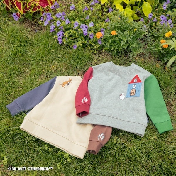 「MOOMIN(ムーミン)」シリーズに登場する個性的なキャラクターや、物語の舞台となるムーミン谷をモチーフにして、クレードスコープらしい遊び心と楽しい色使いで、新生児から未就学児のウェア~小物まで展開