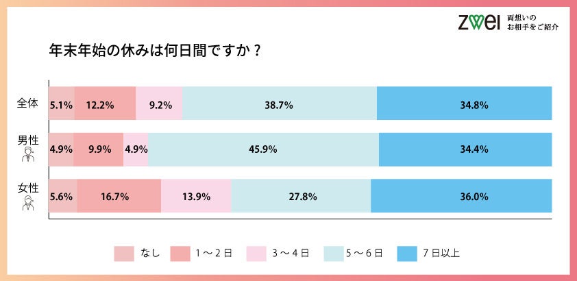 年末年始の休暇は「5~6日」が多数も、婚活中男女の❝お相手探し❞に休みなし!