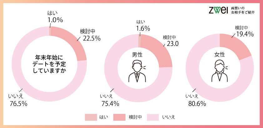 ✓年末年始は休暇日数も様々で、家族と過ごす方が多いのか、デートを考えている方は2割程度に留まった。