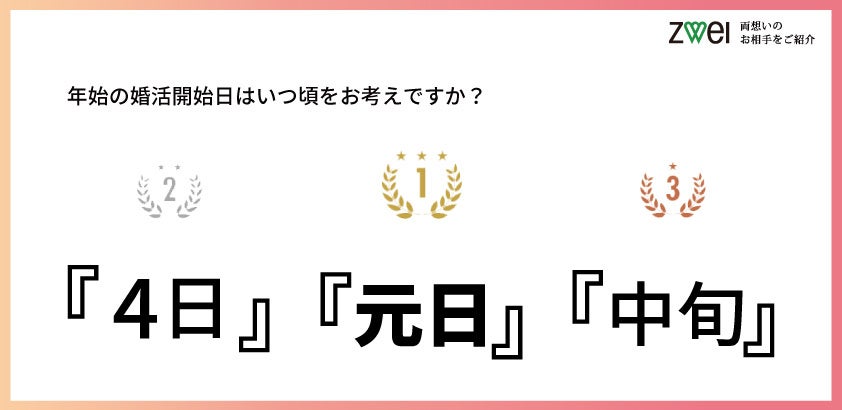 ✓2022年の婚活開始は「1日」からという方が最も多く、婚活に休みなし!