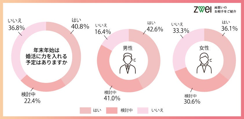✓約4割の方が「婚活に力を入れる」との回答。年末年始はゆっくり過ごす方も多いことから婚活に時間を充てる方が多いのかもしれない。