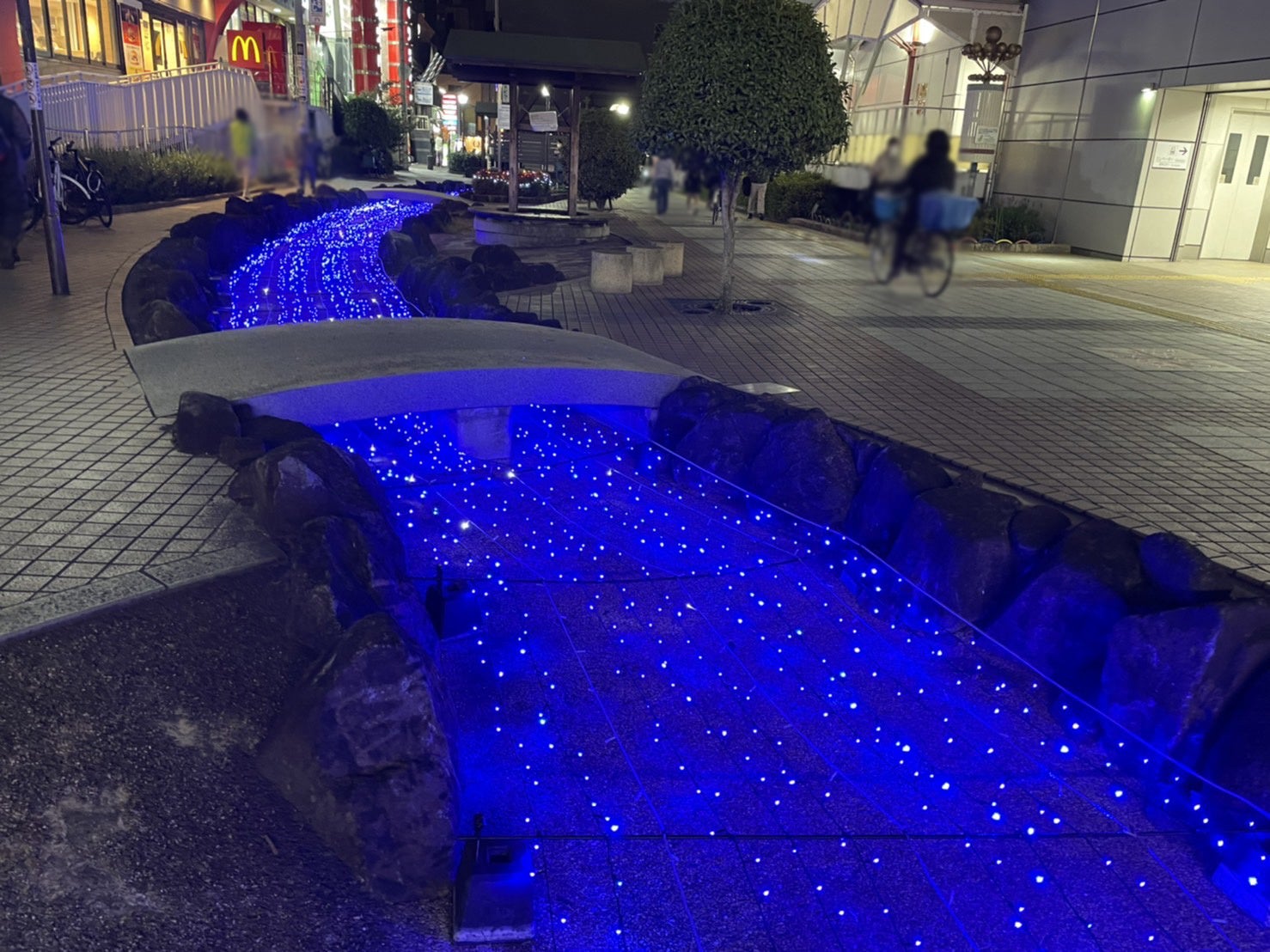 【内容】広場を流れるせせらぎ川や周辺にイルミネーションを設置