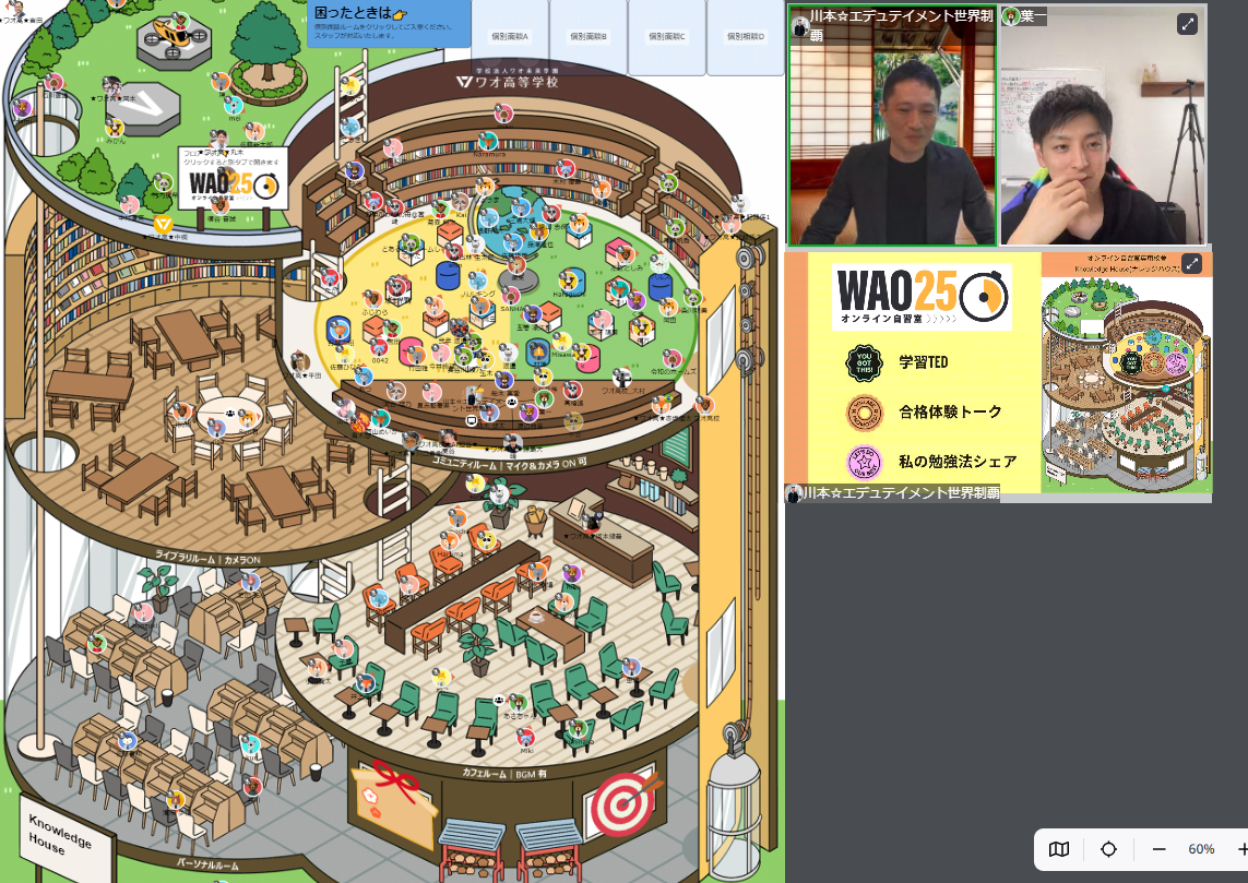 ワオ高校は、ワオ高校が提唱する、自分で学び自分で育つ「学育」の一環として、中高生なら誰でも利用できる、新しい「オンライン自習室 WAO 25」の無料サービスを6月5日(月)より開始いたします。