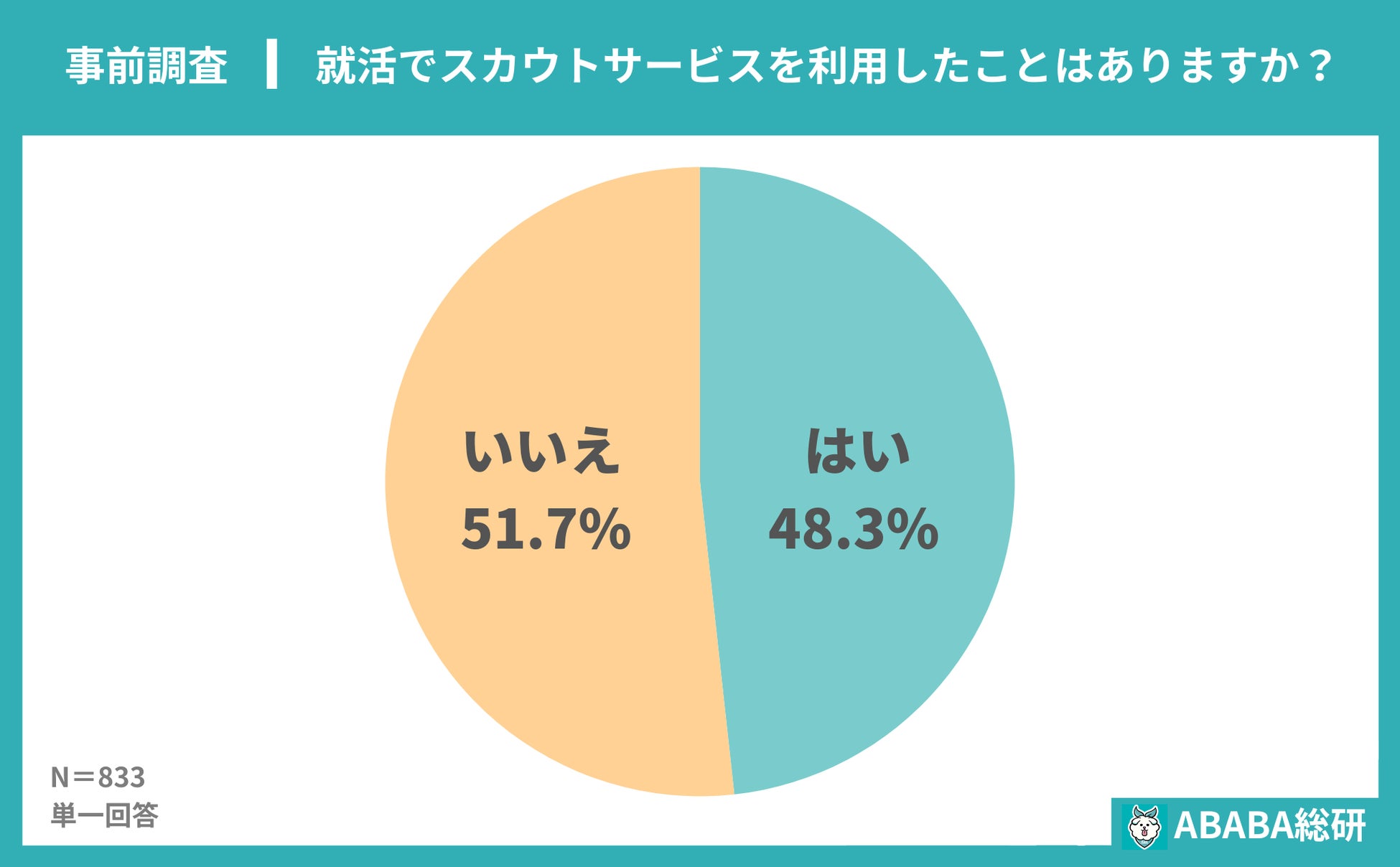 事前調査:就活スカウトサービスを利用したことがある就活生は48.3%と約半数