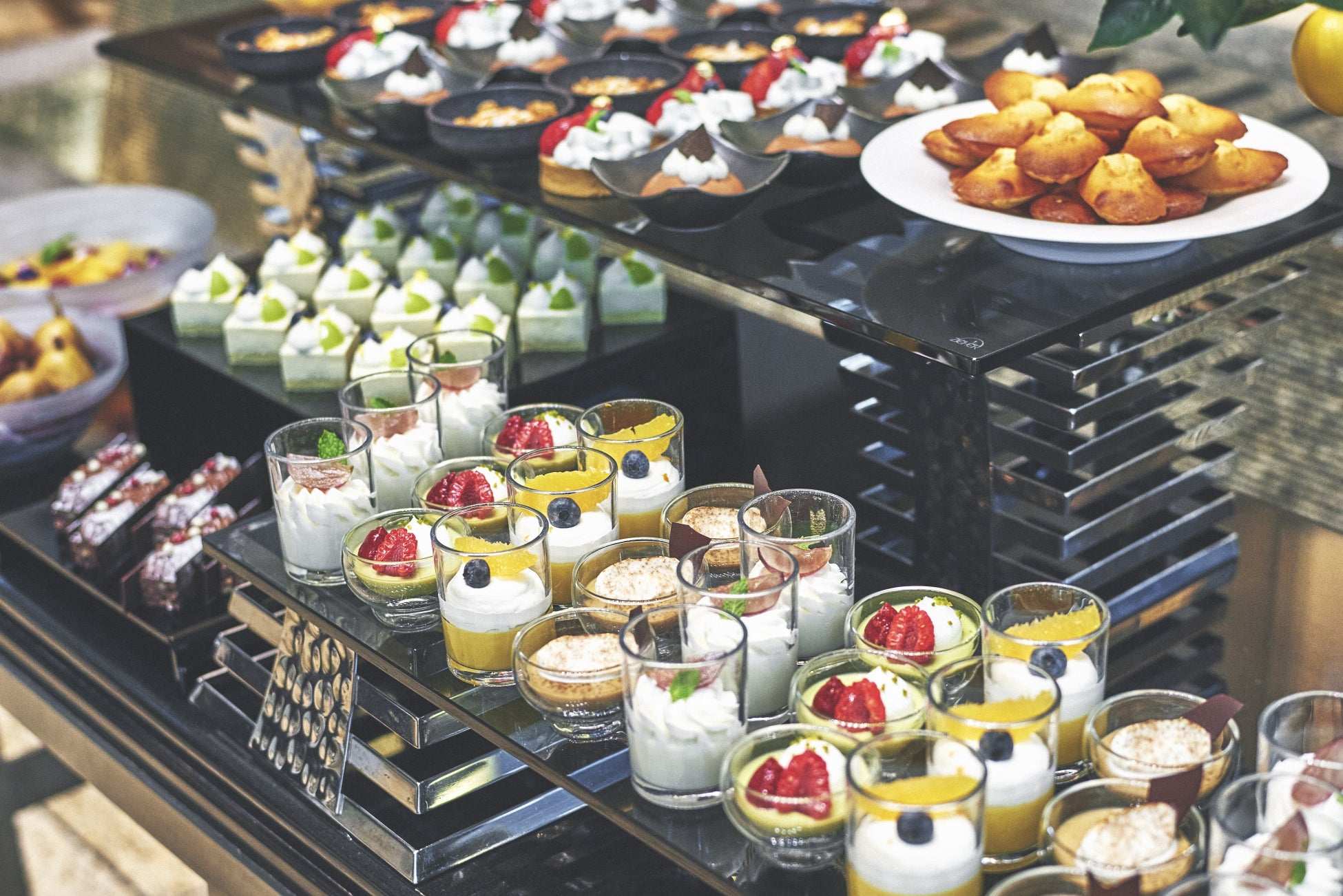 ブッフェテーブルには、日本各地の選りすぐりの生産者から届く新鮮な野菜や、メキシコやカリブで親しまれている料理にヴィンセントのアレンジを加えた一品など豊富なラインアップの前菜が並びます。メキシコ料理に欠かせないタコス、中南米の料理をアレンジした魚やローストチキンなどのホットミールもブッフェでご用意いたします。さらに、ビーフのカービングステーションが登場するほか、ホテル自家製のパンもお好きなだけお召し上がりいただけます。多くのお客さまからご要望いただいた、エグゼクティブ ペストリーシェフ ファビアン・マルタンが監修するデザートもブッフェにてお届けいたします。平日は8種類ほど、土日祝日は10種類ほどの彩り豊かなデザートの数々がブッフェテーブルに華を添えます。