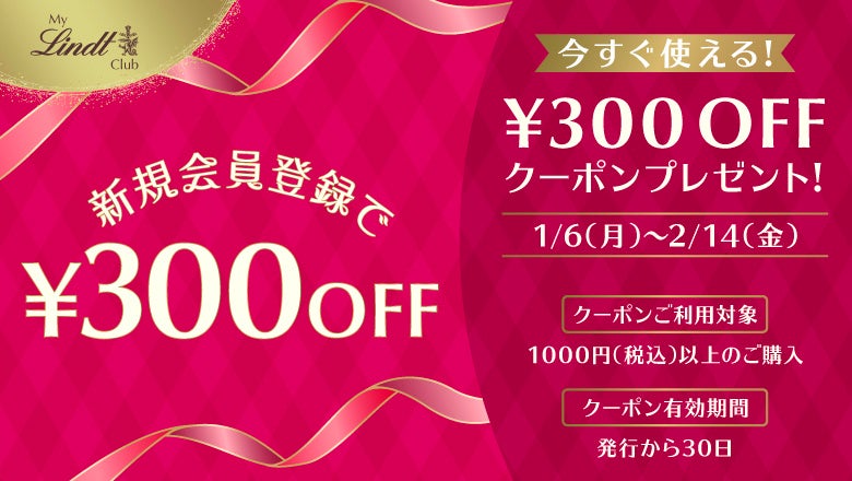 新規登録ご入会特典300円(税込)OFF クーポンの発行期間: