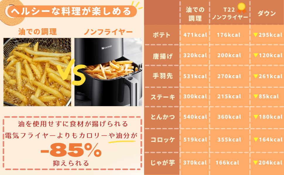 | 比較項目 | Proscenic T22 5L ノンフライヤー |
