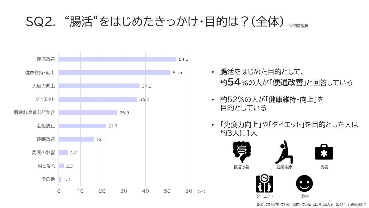 ● 腸活の目的は「便通改善」「健康維持・向上」