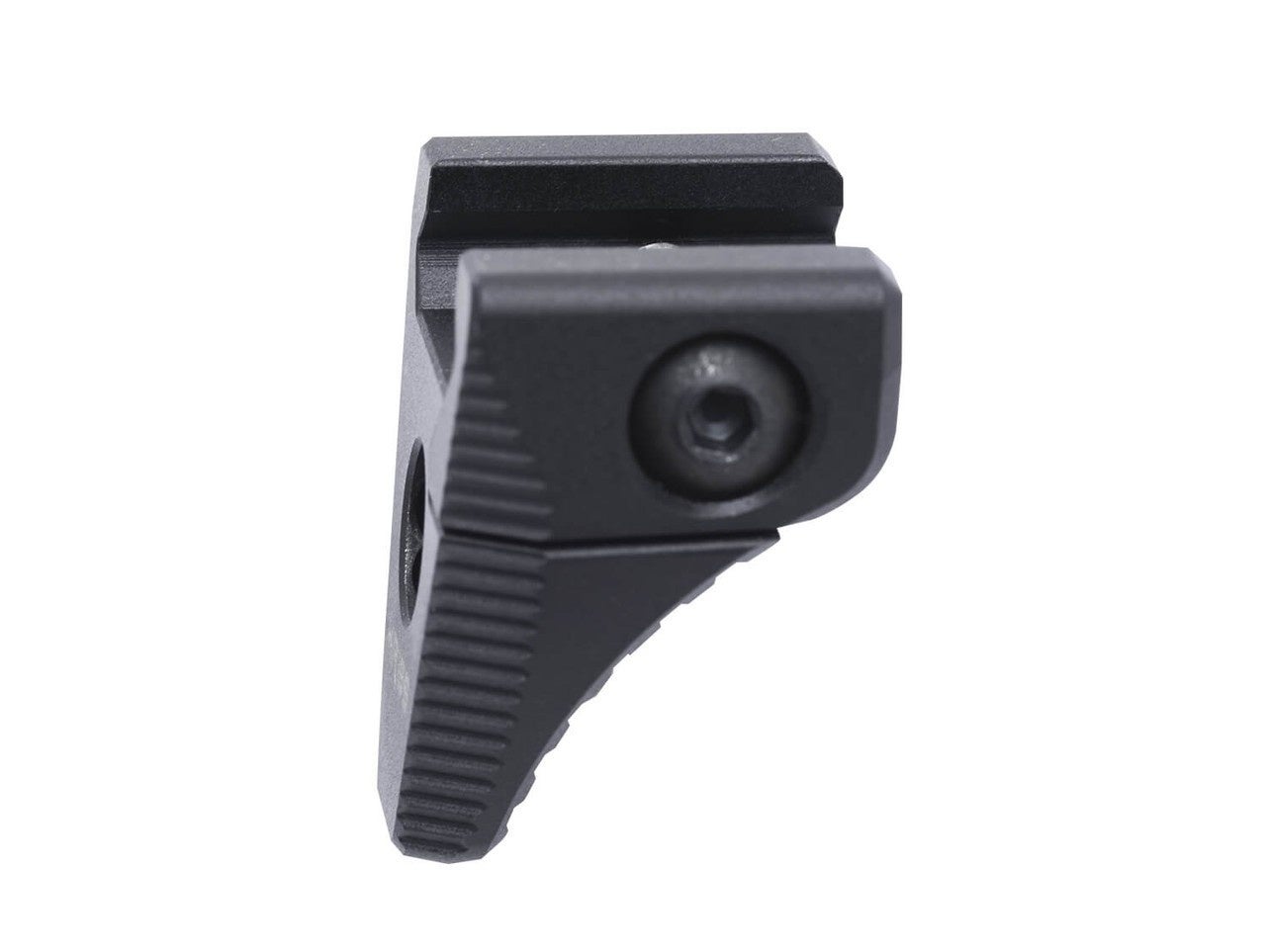 CNC 加工+ハードコート・アノダイズ処理のアルミ製パーツとして、弱めのサイドセーフティレバーを交換。銃体をスリム化し、グリップ時の余計な圧迫を解消します。左右どちら側のセレクターにも使える汎用性も魅力です。