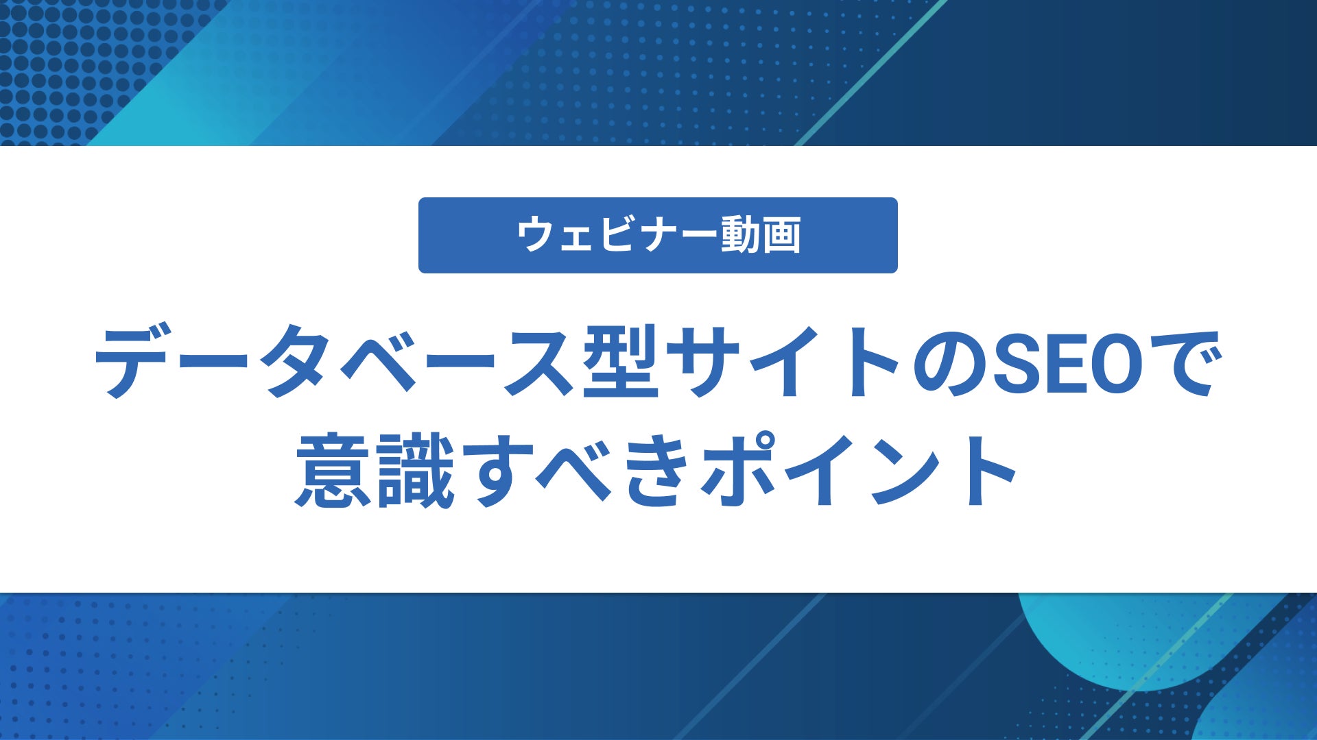 本動画は過去に行われたウェビナー「データベース型サイトのSEOで意識すべきポイント」の本編の動画です。(Q&Aは含みません)