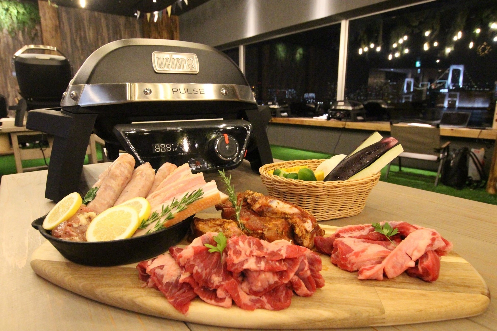 屋内グランピング&バーベキューが楽しめる「ウッドデザインパーク オダイバ トーキョー」の特長は、何と言っても空調完備の屋内で提供するバーベキュープレートです。
