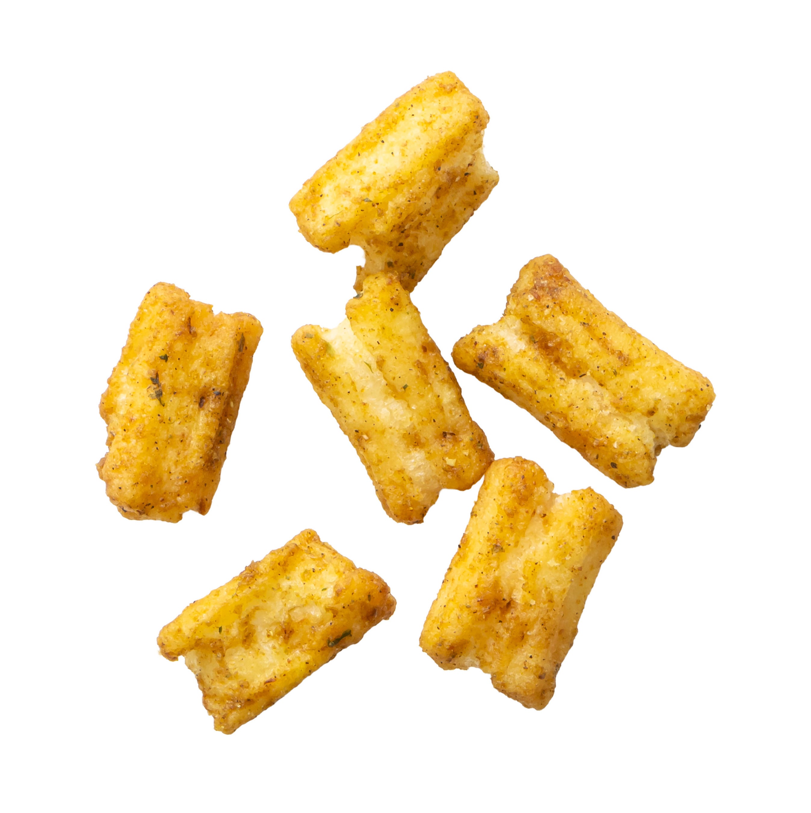 『スパイスカレー揚げ餅』は、もち米とうるち米をブレンドした生地に玉ねぎを練り込み、「サクッ」「ほろっ」とした軽やかな食感が特徴。 “山椒”や“七味”といった「和のスパイス」を軸に20種のスパイスやハーブを絶妙に組み合わせ、香ばしく食欲をそそる味わいに仕上げました。