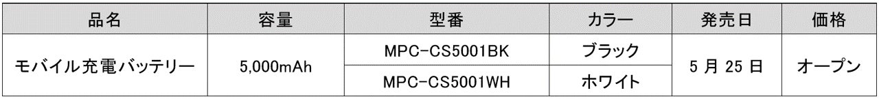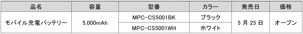 バッグの中でかさばらないスティック型のモバイル充電バッテリー「MPC-CS5001」発売