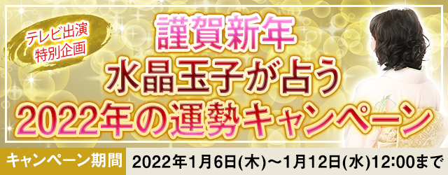 この度、月額公式サイト『水晶玉子 陰陽艶花占』にて、『謹賀新年 水晶玉子が占う2022年の運勢キャンペーン』を開催いたします。キャンペーン期間中は、2022年の運勢が占える鑑定を特別価格でご提供いたします。