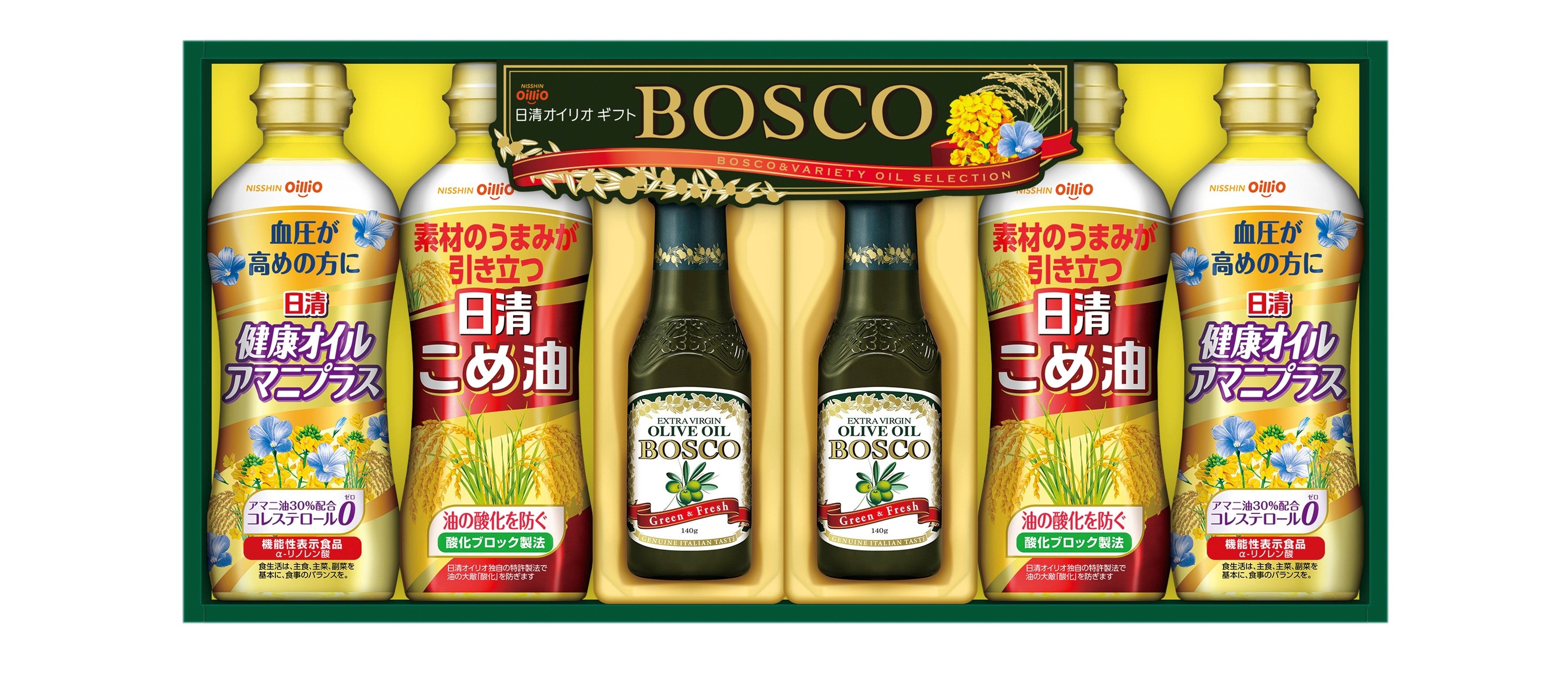 2023年歳暮期の日清オイリオギフトは、人気のボスコオリーブオイルギフトやギフト専用の「Oliva d’ OilliO(オリーバ デ オイリオ)エキストラバージンオリーブオイル」を詰め合わせた、食卓に輝きと彩りをそえる美しきオリーブオイルギフトに加え、人気のこめ油や話題のアマニ油を中心にラインアップを多数取り揃えた、バラエティ豊かなギフトをご提案しています。