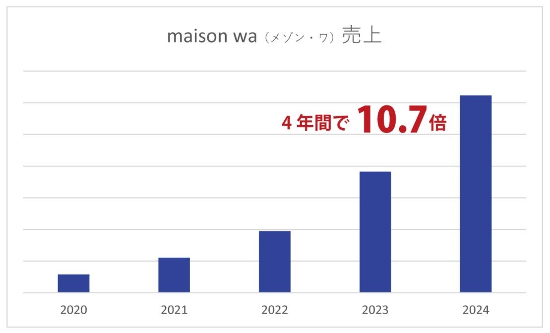 パリでの販路となる「maison wa(メゾン・ワ)」での売上は、4年前の2020年度と比較すると10.7倍*¹増となりました。リピーターのお客様も年々増えています。