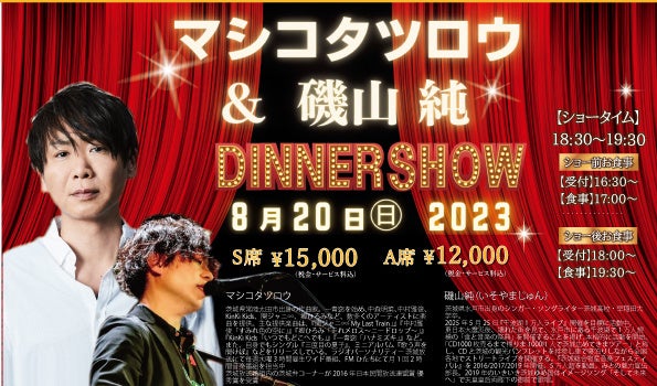【ホテルテラスザスクエア⽇⽴】 茨城弁炸裂のラジオで人気!茨城県の誇るミュージシャン マシコタツロウ&茨城愛を貫く水戸出身貴公子シンガー磯山純スペシャルディナーショー 開催まであと12日!