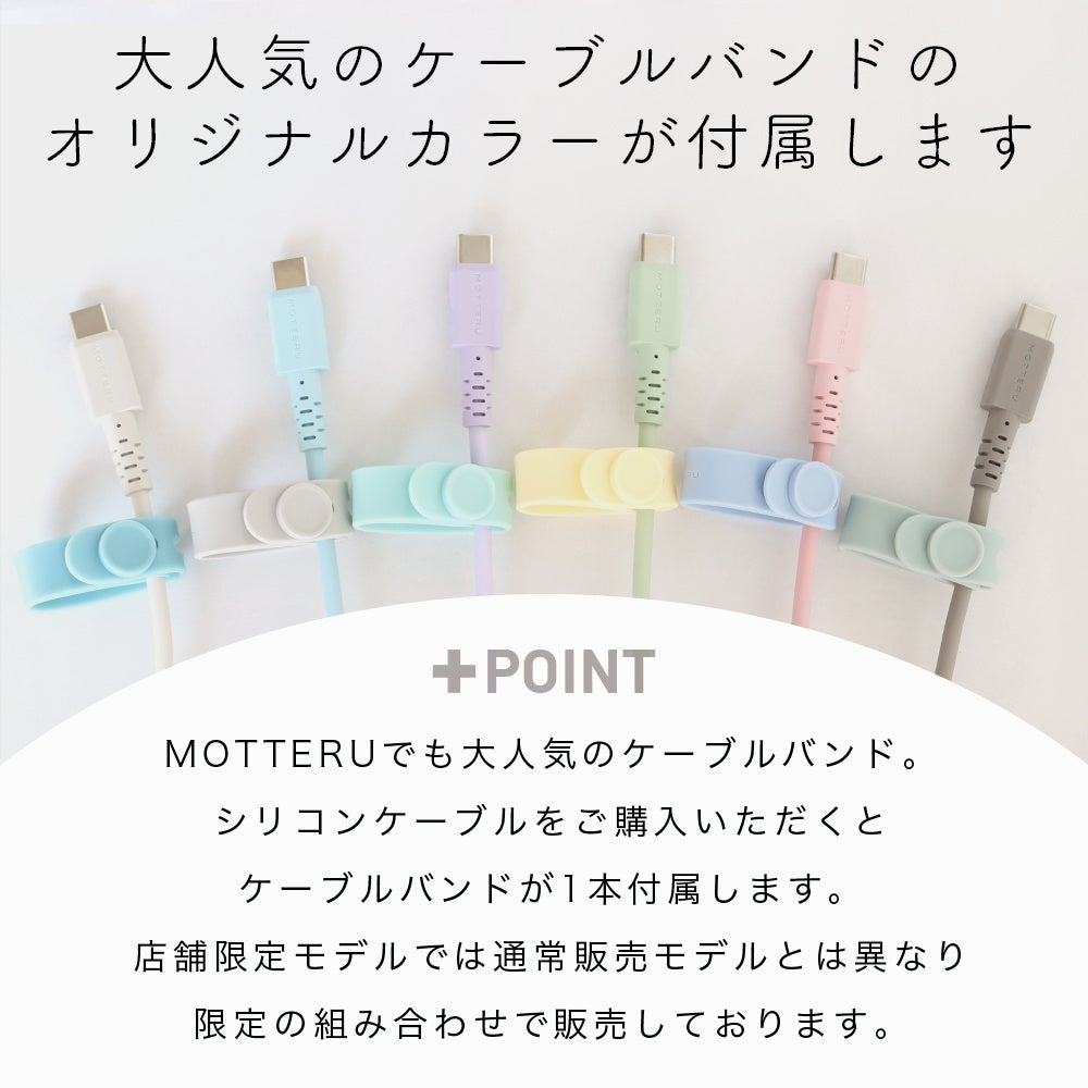 MOTTERUのシリコンケーブルは、まるで赤ちゃんの肌のようになめらかで、ずっと触っていたくなるような手触りです。MOTTERUらしい優しいカラーリングと、可愛らしく、自分の好みで楽しむことができることから、人気の商品です。可愛らしいカラーリングながらも、しなやかで断線に強く、50,000回の屈曲試験をクリアした耐久性も備えています。