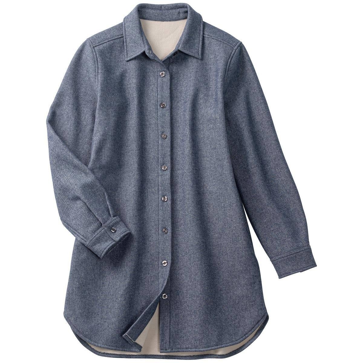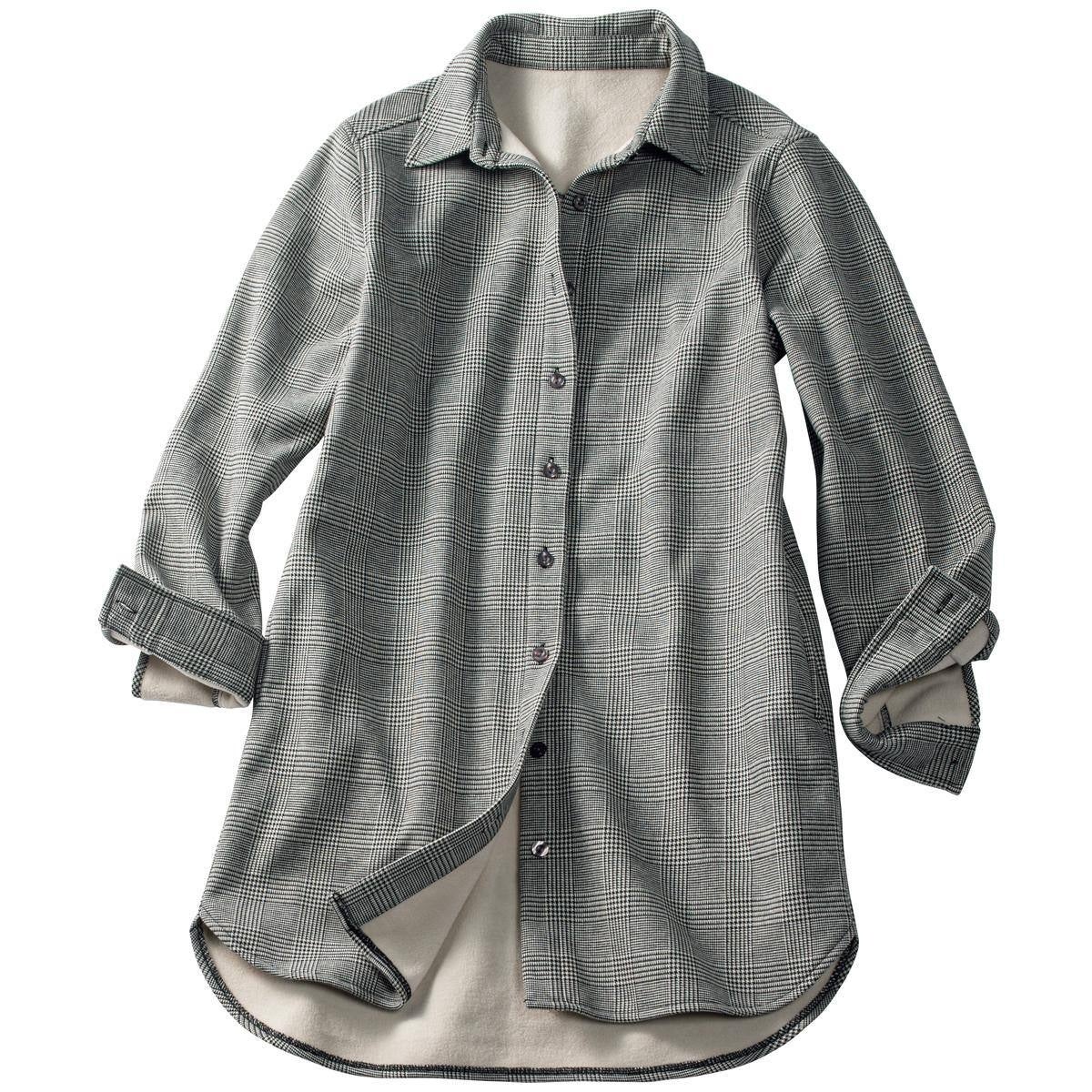 カジュアルなデザインシャツのような見た目で、ライトアウター並みの暖かさ。お家の中でも肌寒い時や、ご近所へのお出かけにも、すっきり見えながら程よくゆとりのあるシルエットで着やすく、さっと手軽に羽織れます。長めの丈で太もも裏までぬくぬくです。