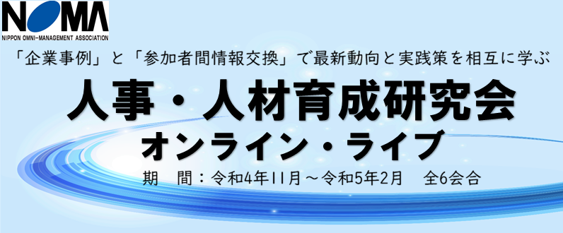 一般社団法人日本経営協会(事務局本部:東京都渋谷区、会長:高原 豪久)は、2022年11月から全6回にわたり、企業の人事関連部門、担当者のための事例研究会「令和4年度 人事・人材育成研究会」をオンライン・ライブにて配信いたします。