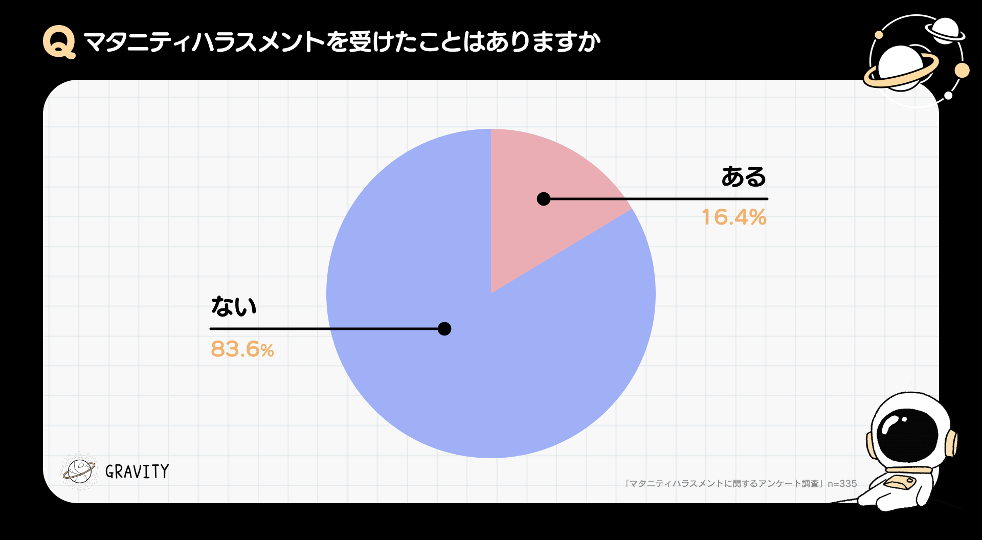 これまでにマタニティーハラスメントを受けたことがあると回答した人が16.4%。